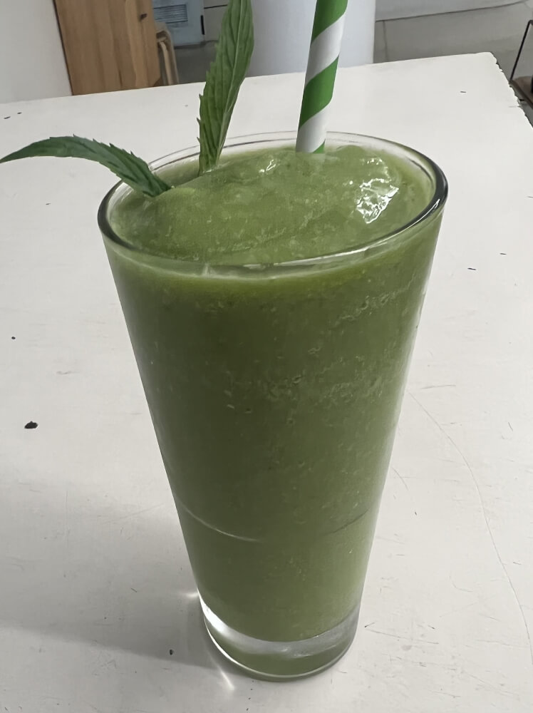 Spinach, celery, avocado, apple, banana, coconut, water & blend