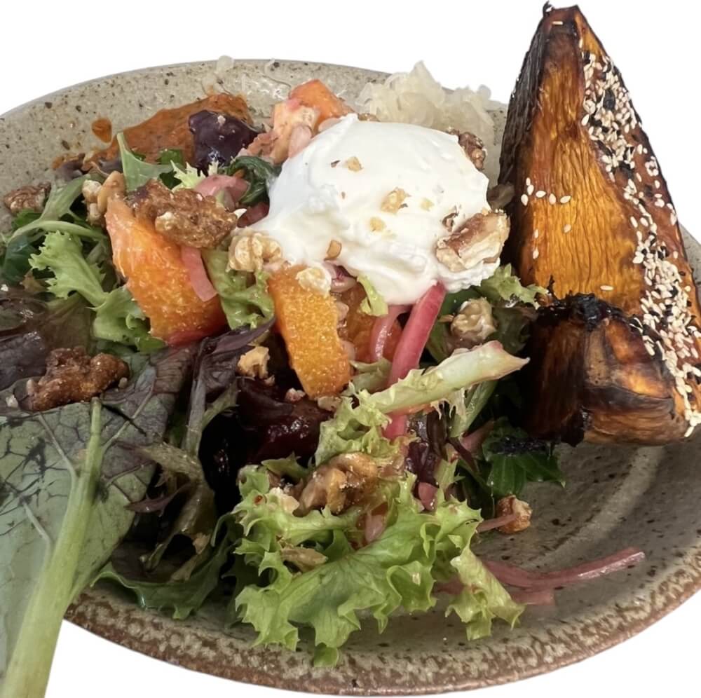 Roast Beetroot, Orange & Goats Curd, Pickled Onions, Cress and Candied Walnuts
