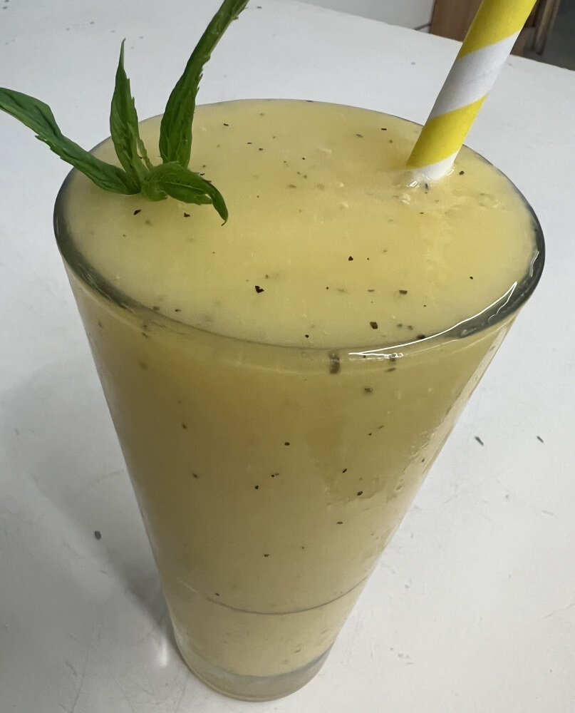 Mango, Pineapple, passion fruit, iced w water & blend